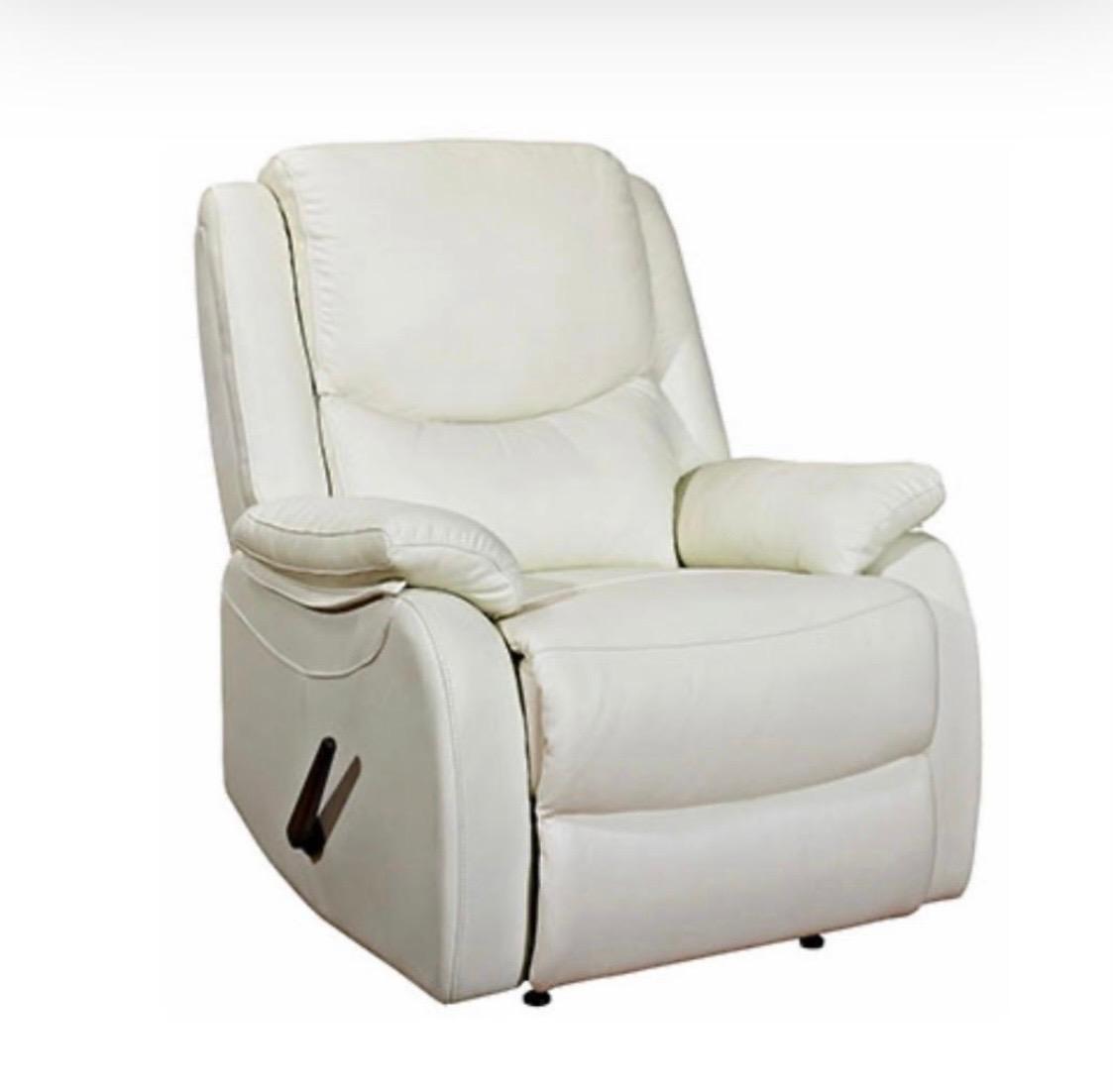 כורסא מעור בעלת מושב קפיצים אורטופדים תמיכה מלאה בחלקי הגב העליון הכורסא מתנדנדת והדום