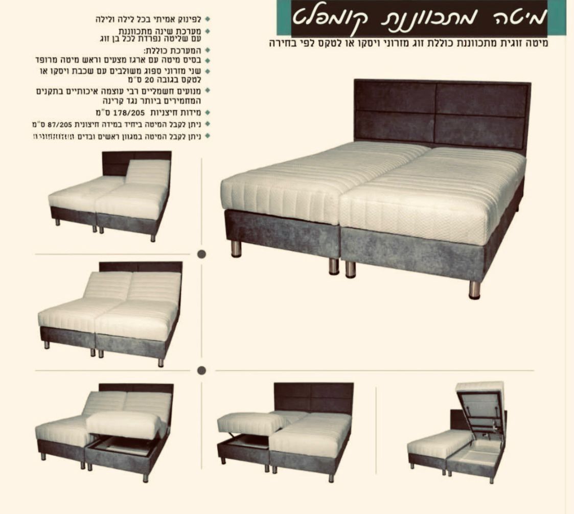 במערכות יש ארגז מצעים לכל יחידה ושלט חשמלי להרמת ראש ורגלים